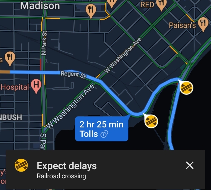 เป็นที่ฮือฮาหลังผู้ใช้งาน Reddit ท่านหนึ่ง ออกมาโพสต์ถึงฟีเจอร์ใหม่ของ Google Maps ว่า Google Maps โชว์ไอคอนวงกลมสีเหลือง และมีรางรถไฟอยู่ด้านใน ซึ่งจะแสดงเฉพาะตำแหน่งที่มีทางรถไฟ พร้อมทั้งยังมีการแจ้งเตือนจากด้านล่างของหน้าจอกว่า อาจทำให้เกิดความล่าช้า แต่อีกนัยมองว่าการเป็นการเตือนความปลอดภัยในการขับขี่ของผู้ใช้งานได้อีกด้วย